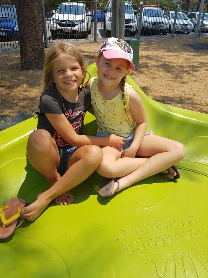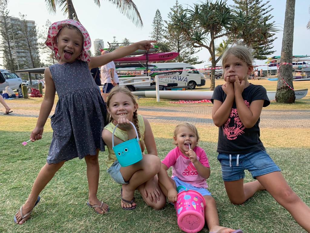 The girls loved seeing Jennayah and her younger sister Nikisha again, we found a play area and picnic spot despite a busy Saturday at Burleigh Heads with national surf ski competitions to watch.