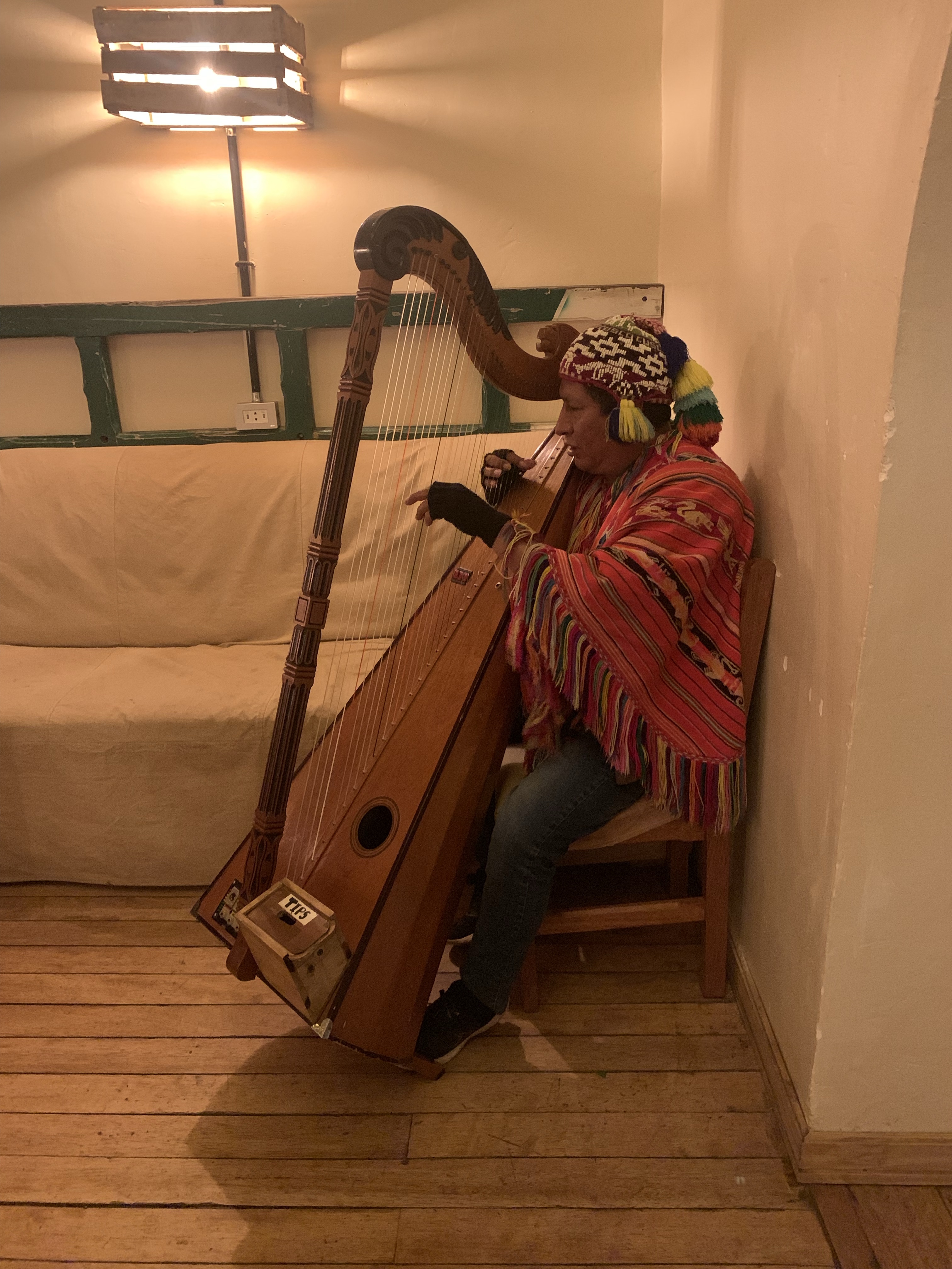 Entertained by a blind musician playing a traditional harp, we took the set menu which included our first taste of guinea pig washed down appropriately by a delicious cocktail called a Matacuy Sour (which translates as ‘kill the cui’ or guinea pig made from the local spirit, cañazo).