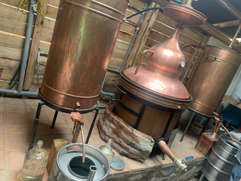 We found a micro distillery where cañazo was distilled in copper and a coffee roastery.