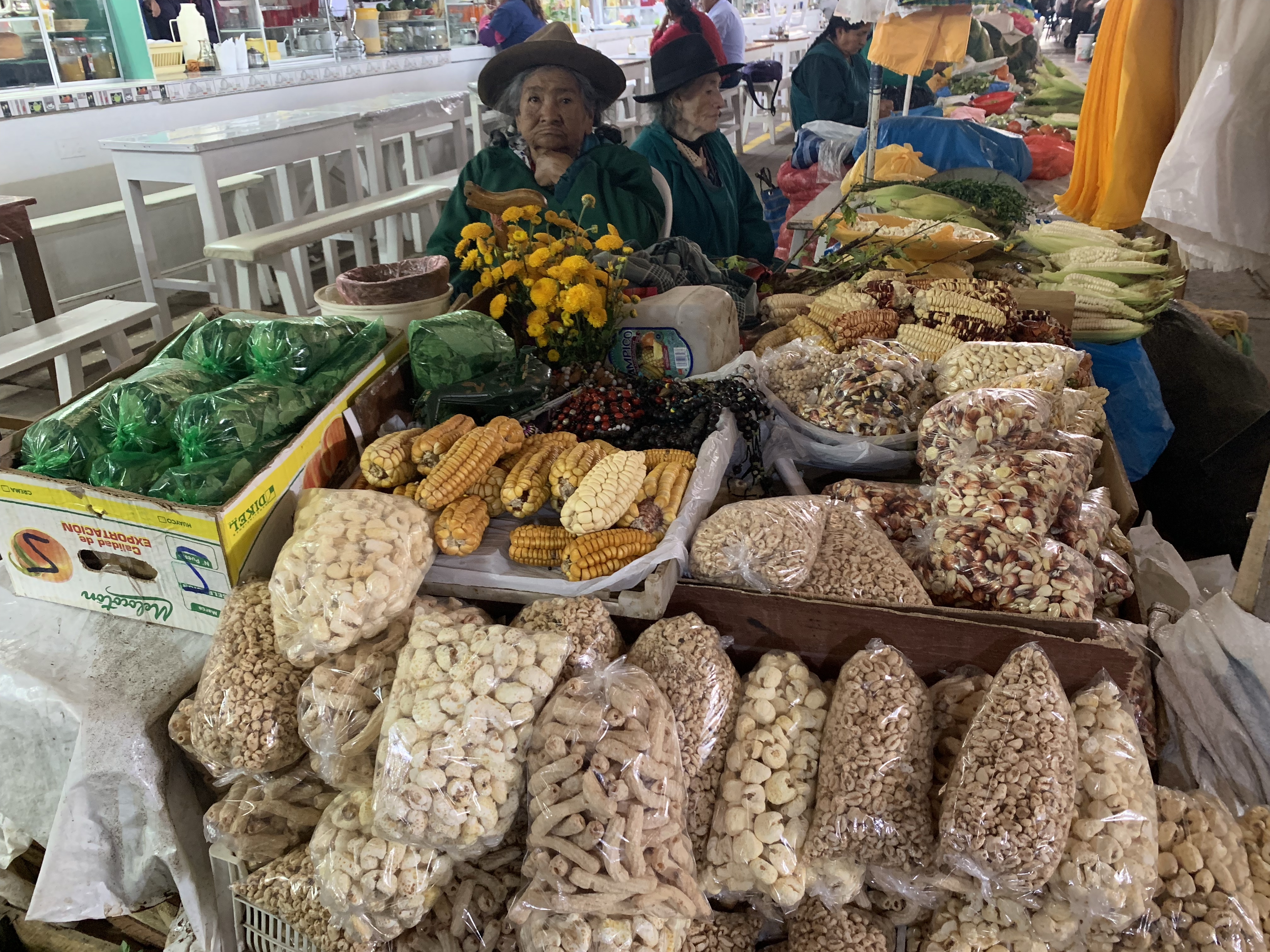The next day was our last in Peru. We walked down to Mercado de San Pedro, where we bought the girls local style hats and had a look around the food stalls.