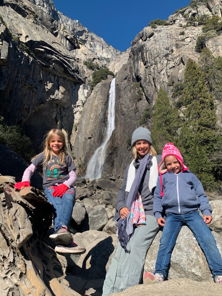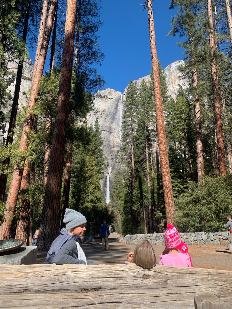 With one day to explore the park we headed off after breakfast to tick off some highlights that were possible to walk to with little legs. First on our list were the Yosemite Upper and Lower Falls, a gentle, circular walk to see the waterfalls which were pretty impressive, and we stopped in a nice spot for a picnic lunch.