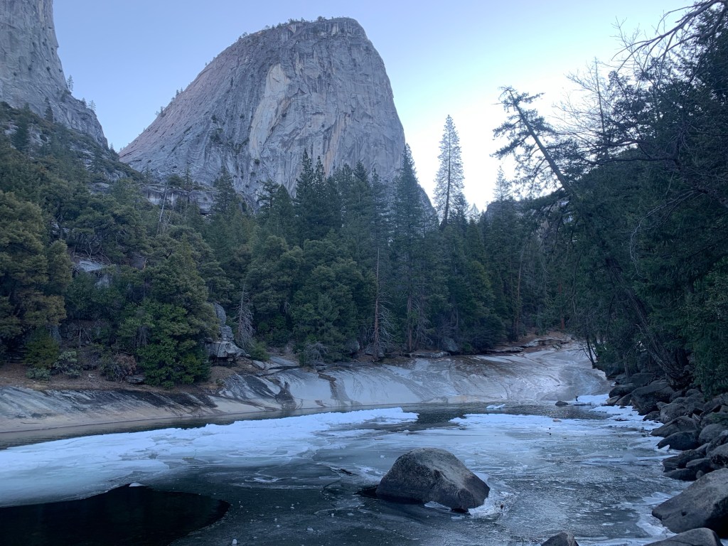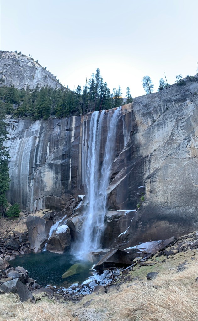Tom opted for more of a dramatic route the following morning to get to a viewpoint we hadn’t made it to altogether, to see Vernal Falls which was a hilly, chilly run with views of a frozen lake, very memorable, and probably better than mine.
