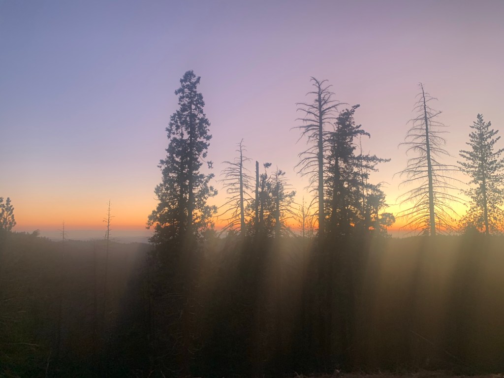 Speeding through the mountain passes towards Yosemite, we listened to Bruce Springsteen and were dazzled by a dramatic sunset through the back window of our campervan.